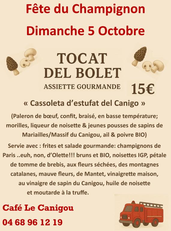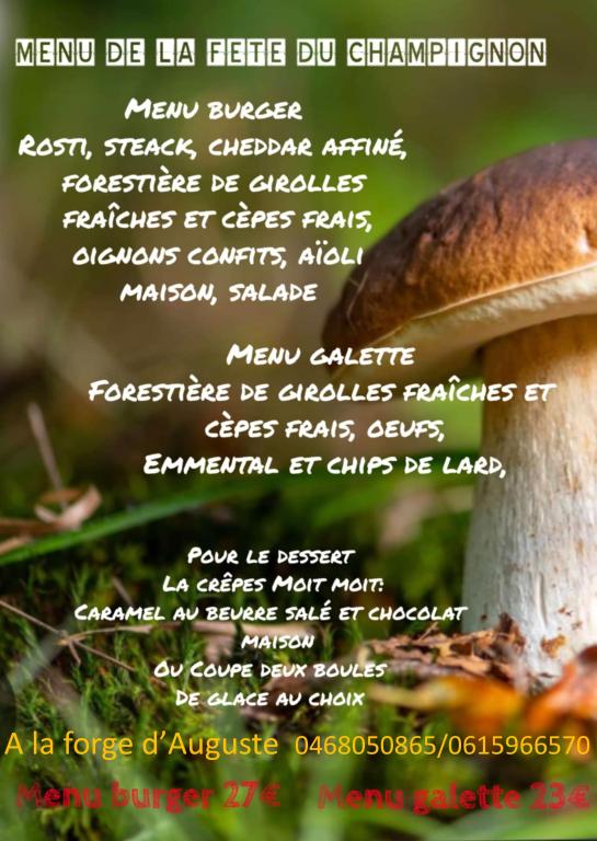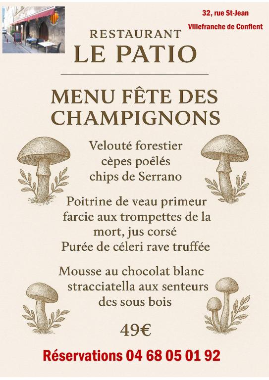 Le détails des menus sur simple demande à La Boutique du Champignon 04 68 05 94 76, ou site internet www.boutique-du-champignon.com ou facebook . Office Tourisme : 04 68 05 41 02